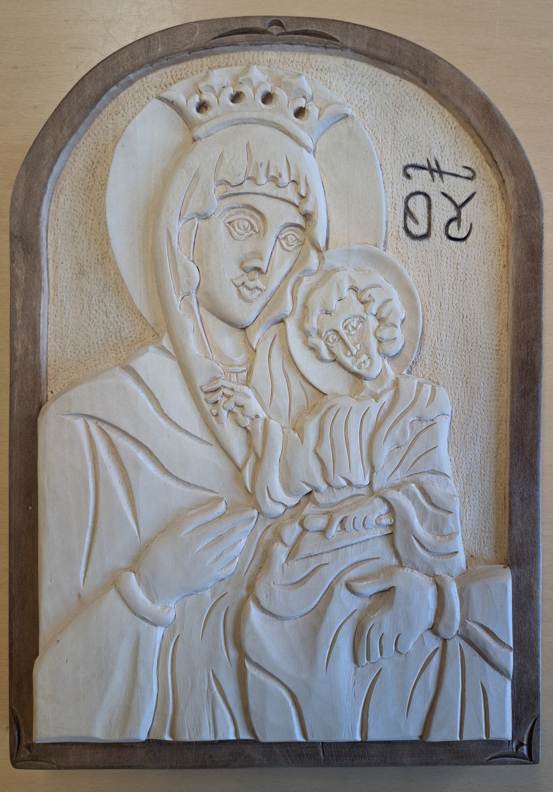 Handgefertigte, geschnitzte Ikone der Gottesmutter mit Christus